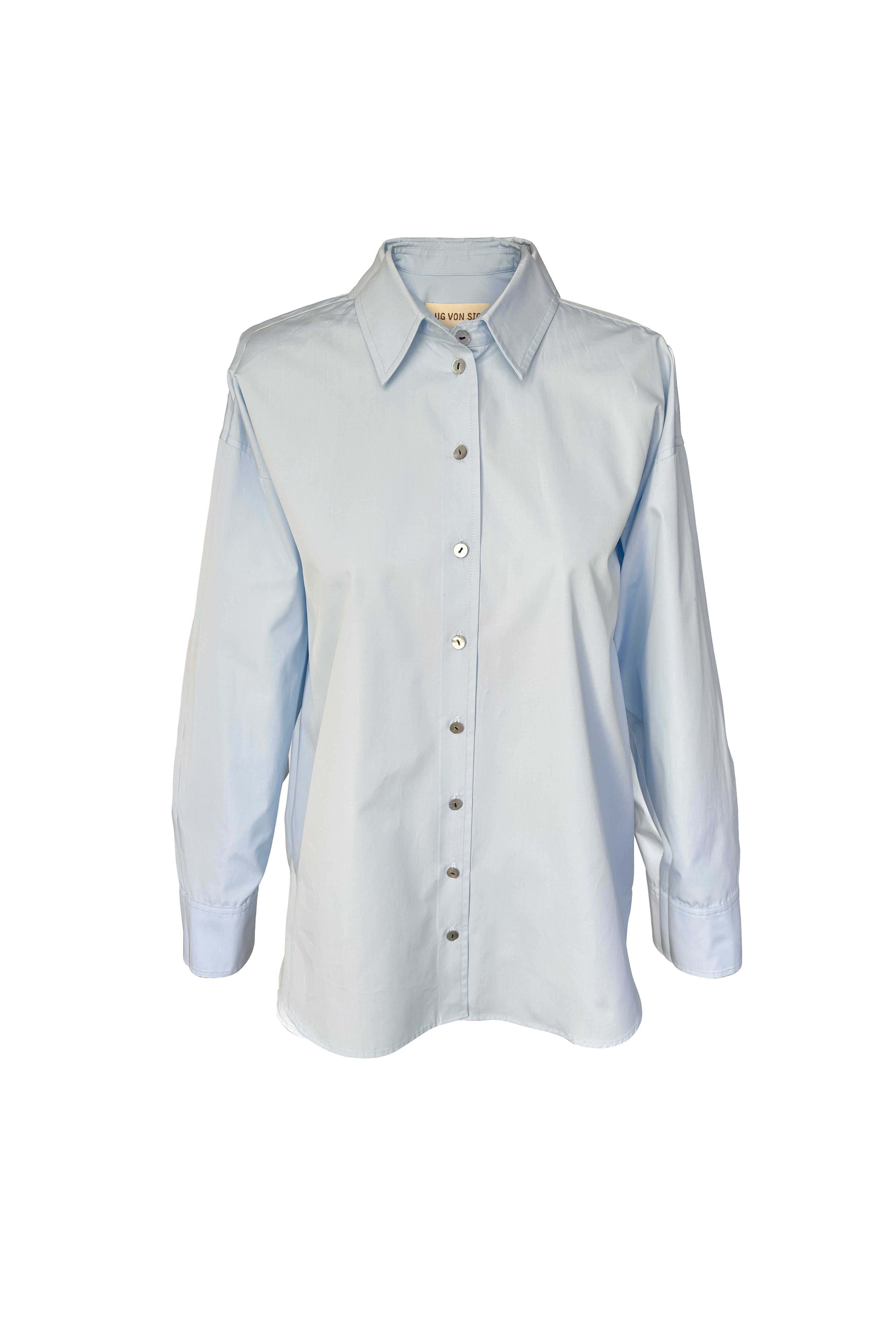 A study in refined simplicity, this striped shirt duo reimagines a timeless wardrobe classic through Lug Von Siga’s poetic lens. Clean lines meet relaxed tailoring, while subtle details— embroidered collars, muted palettes, precise buttoning—elevate the everyday into something quietly elegant.