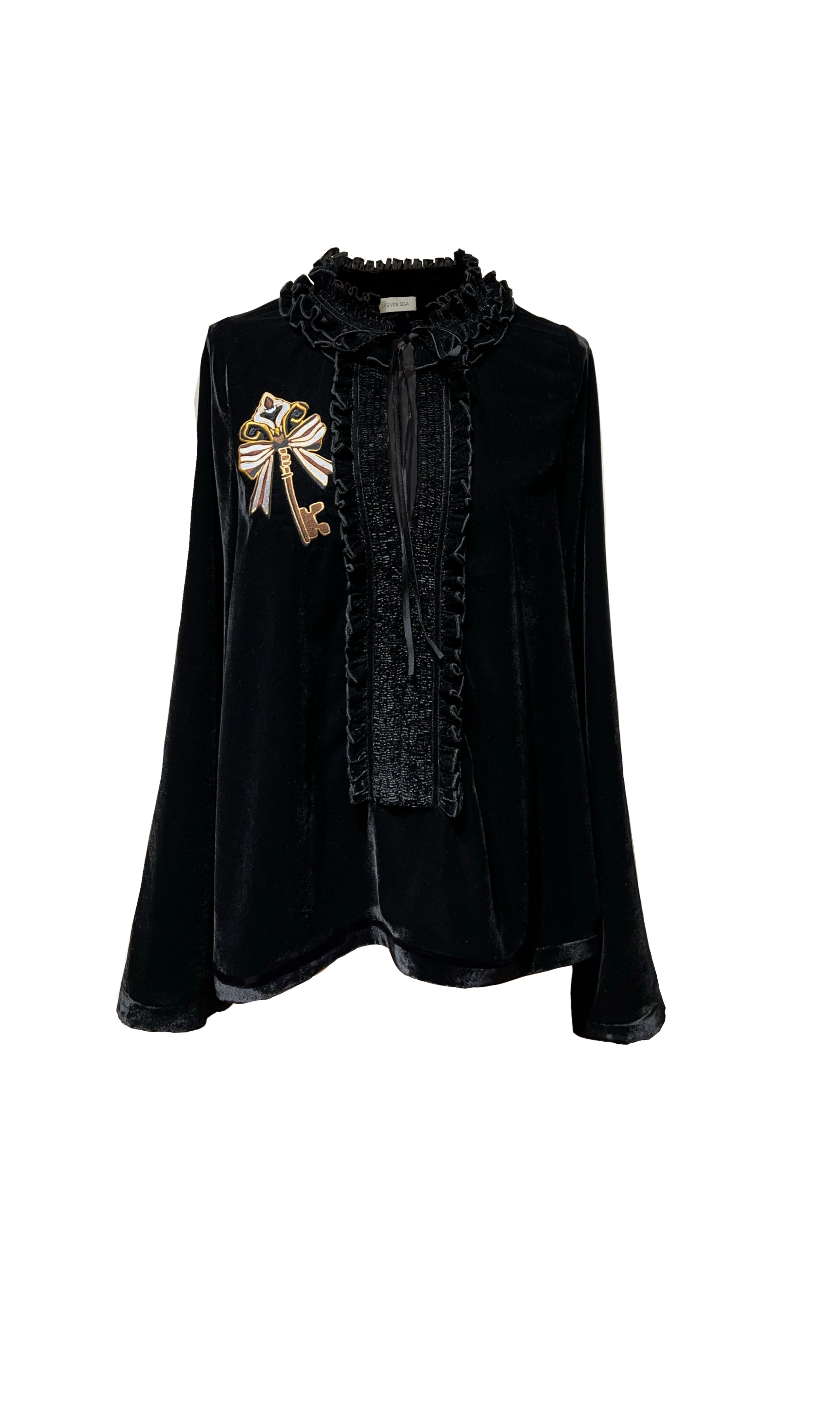 Romantic and feminine, the Bianca Top is detailed with soft ruffles and voluminous sleeves. Designed to flatter with a cinched waist, it pairs beautifully with the Alaaddin Pants for a striking ensemble, or with skirts for a lighter mood.